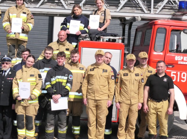 Zajęcia odbywały się w zróżnicowanych warunkach – zarówno na terenie jednostek, jak i poza nimi. Strażacy ćwiczyli m.in. w lesie na terenie Nadleśnictwa Strzałków oraz na złomowisku. Kurs rozpoczął się pod koniec lutego i zakończył 19 kwietnia 2026 r.