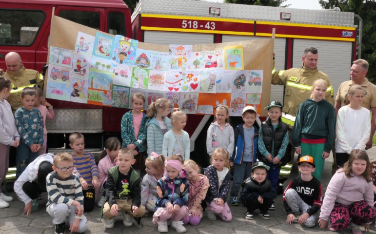 Druhowie nie pozostali dłużni – zaprosili dzieciaki wraz z wychowawczyniami do OSP, gdzie przygotowali pogadankę edukacyjną na temat pracy strażaka, zagrożeń pożarowych i odpowiedzialności, jaką niesie ze sobą ta profesja. Największą atrakcją dla dzieci był jednak pokaz sprzętu strażackiego.