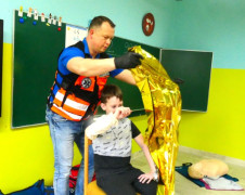 - Moim zadaniem było jeszcze większe, jeszcze bardziej odpowiedzialne i profesjonalne przygotowanie ich do tego, aby w sytuacji zagrożenia zdrowia bądź życia potrafiły zareagować, aby potrafiły wybrać odpowiedni numer telefonu, czyli 112 lub 999, aby potrafiły zareagować w sytuacji zagrażającej życiu człowieka. Podczas spotkania nie tylko pokazywałem, ale i wspólnie ćwiczyliśmy podstawy resuscytacji krążeniowo - oddechowej, jak pozycja bezpieczna, ocena funkcji życiowej osoby poszkodowanej oraz postępowanie w przypadku urazów różnego rodzaju: krwotoku, złamań, zwichnięć, urazów kręgosłupa szyjnego - dodaje Rafał Berdys.