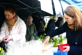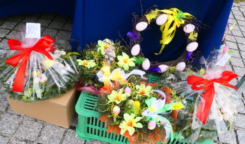 Grupa osób sprzedająca wielkanocne produkty Mężczyzna trzyma w ręku wielkanocną palmę Wielkanocne stroki z dodatkiem żywych kwiatów Wielkanocne stroki Stoisko wystawiennicze z wielkanocnymi ozdobami. Widoczne są osoby zainteresowane kupnem m.in. ciast i stroików Stoisko wystawiennicze, na którym znajdują się wielkanocne ozdoby. Widoczne są osoby zainteresowane kupnem ciast i stroików Wielkanocne stroiki Wielkanocne stroiki Wielkanocne stroiki Wielkanocne stroiki Stoisko wystawiennicze: widoczne ciasto, stroik oraz naczynie, w którym znajduje się kugiel Dziewczynka ogląda ozdobę świąteczną